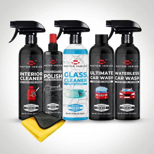 Car Care Kit 6 in 1 ( Interior Cleaner, Ultimate Car Wash, Glass Cleaner, Waterless Car Wash, Dashboard Polish, Microfiber Towel 600 GSM)