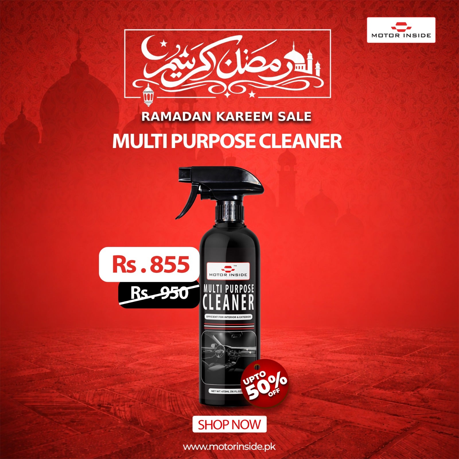 Motor Inside Multi Purpose Cleaner is a versatile Cleaner that cuts through all levels of dirt, grease, and grime with the power of natural citrus inside, outside, or even underneath your & vehicle to restore a crisp OEM sheen. Clean dashboards, door panels, steering wheels, shift knobs, vinyl seats, glass, LCD screens and more.